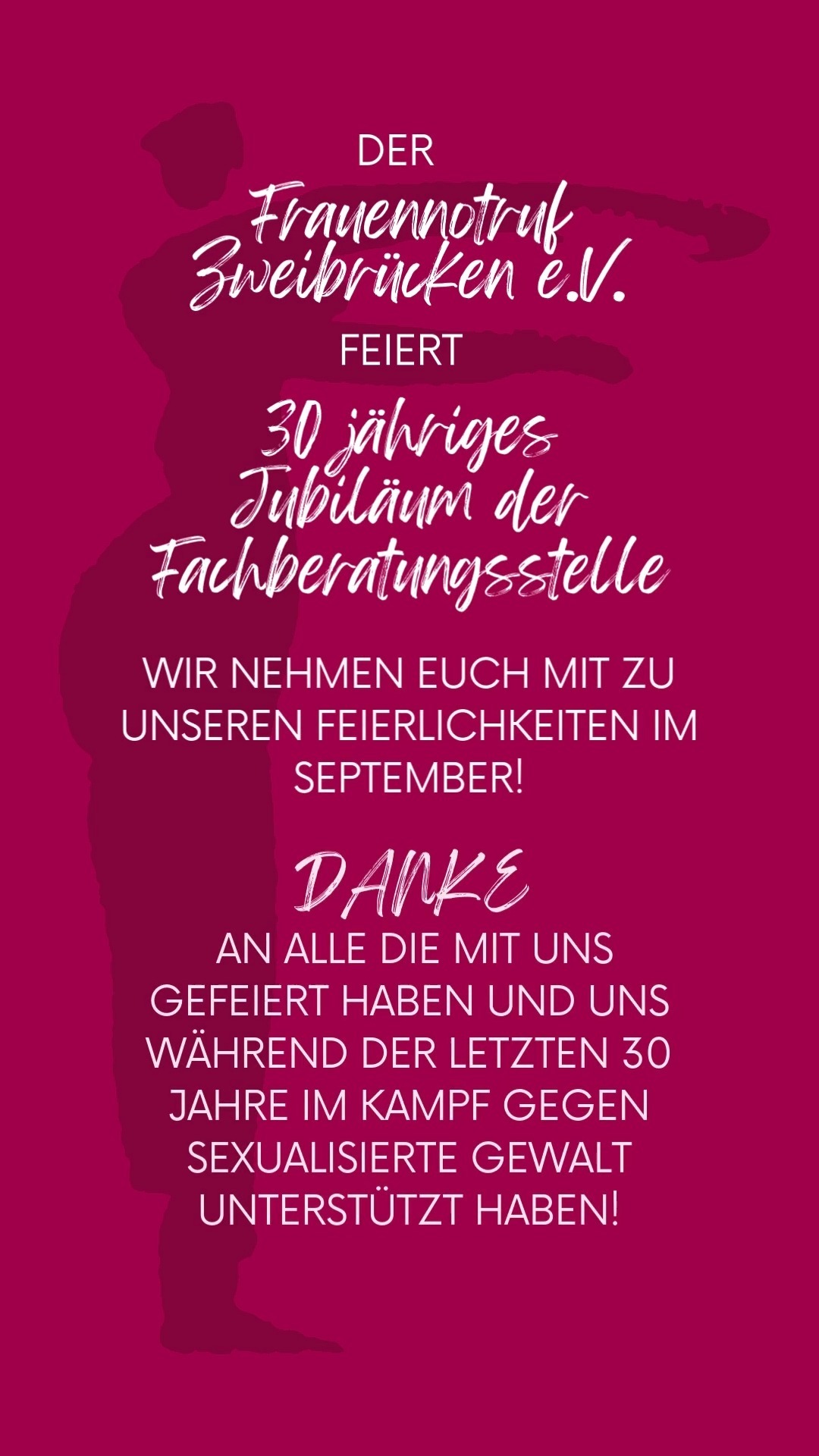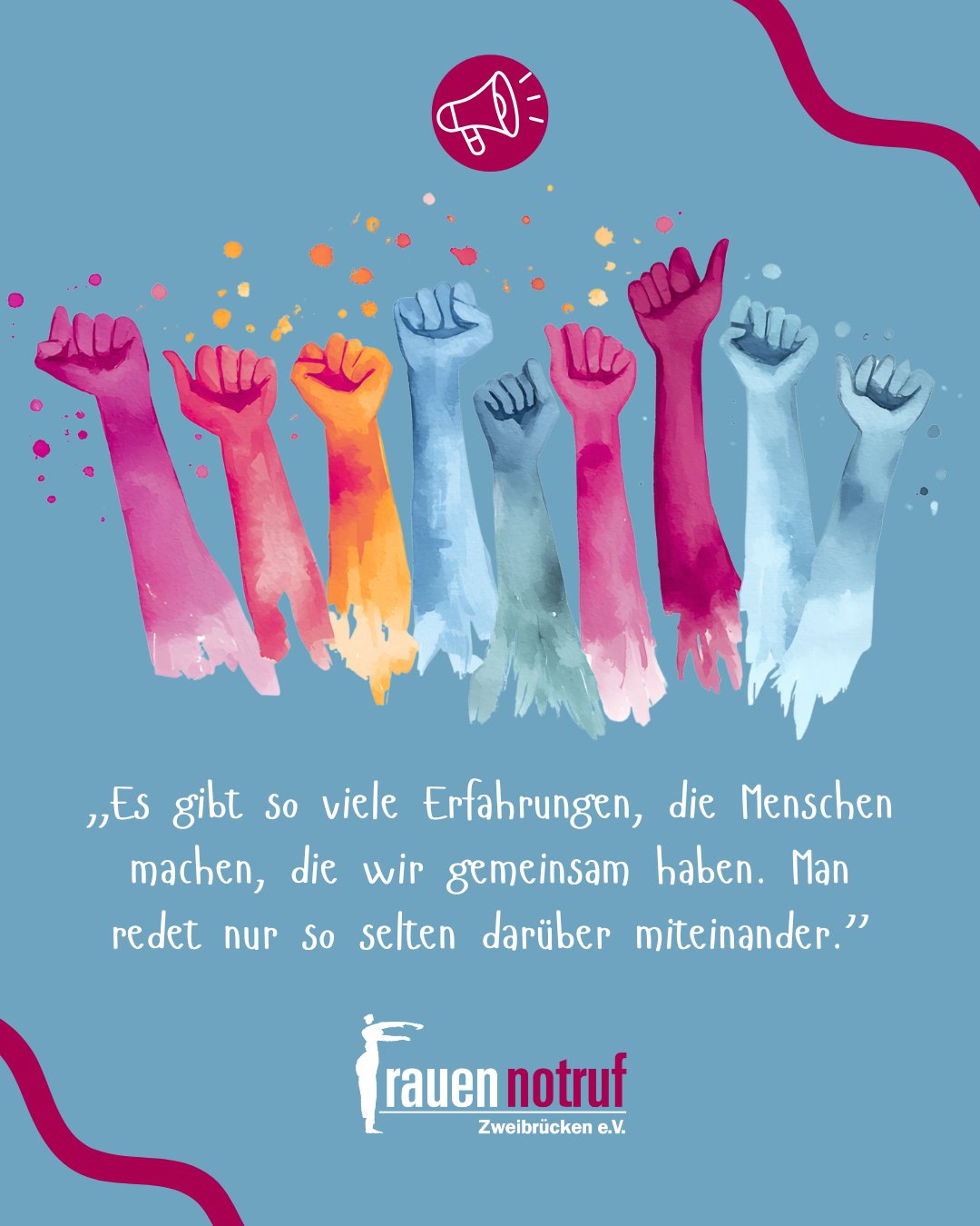 Lasst uns gemeinsam das Schweigen brechen! Signalisieren wir Gewaltbetroffenen: Sexualisierte Gewalt ist kein privates Problem von Einzelnen, sondern ein gewaltiges Tabu, das uns alle angeht.